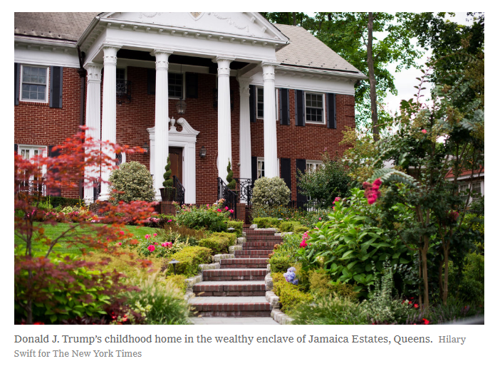 But the Jamaica Estates of Mr. Trump’s boyhood was an exclusive and nearly all-white place, resistant to outsiders and largely impenetrable to minorities.