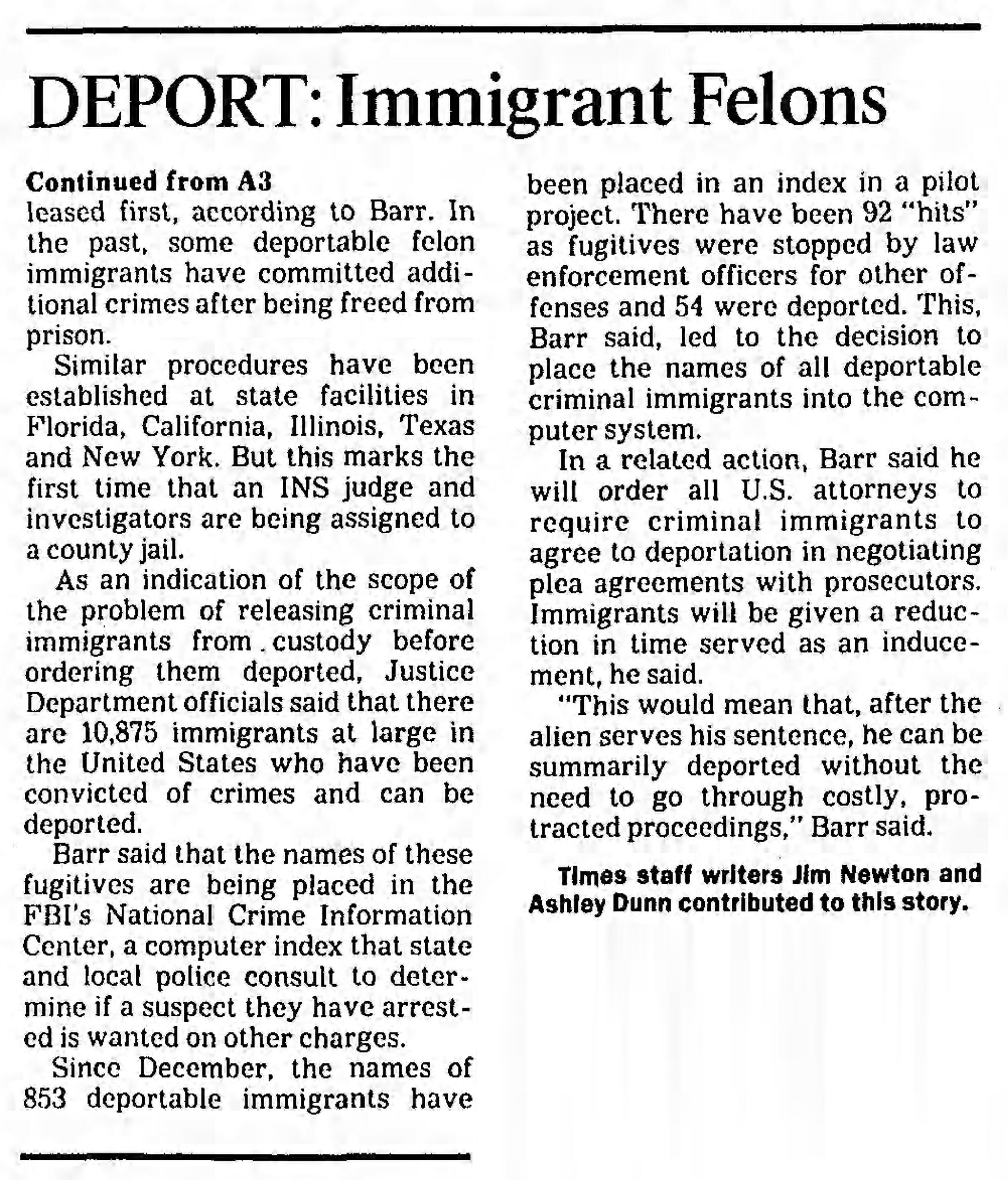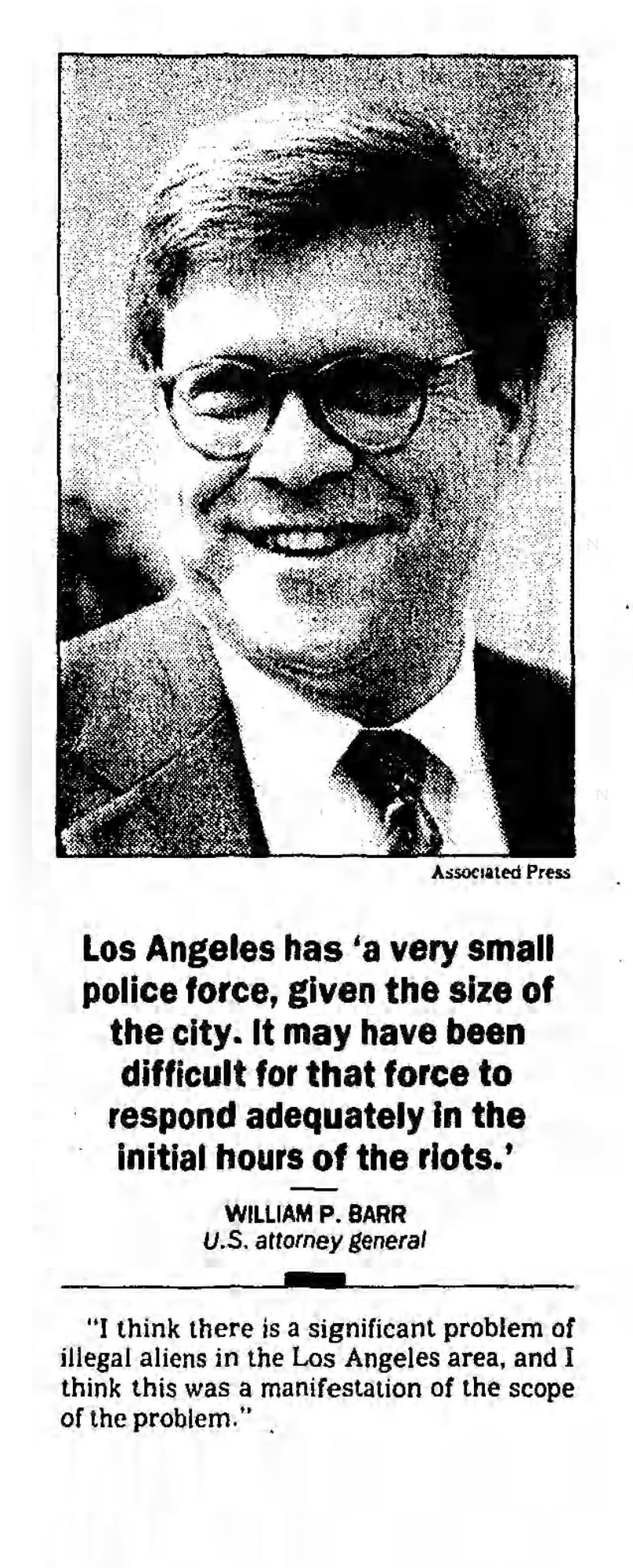 May 19, 1992 — Barr Says L.A. Requires More Police, by Ronald J. Ostrow