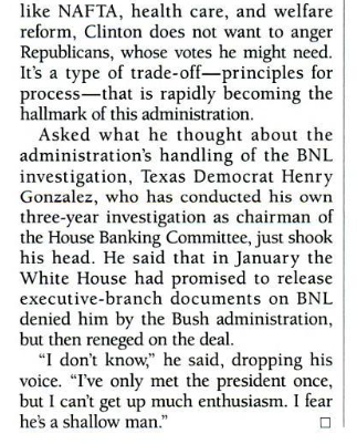 Moreover, it has created a corrosive cynicism. “Fool me once, shame on thee; fool me twice, shame on me,” goes the old rule of self-preservation. Thus we are inevitably tempted to assume that Attorney General Janet Reno was not leveling with us last week when she defended the Justice Department’s handling of the Atlanta bank loan to Iraq.