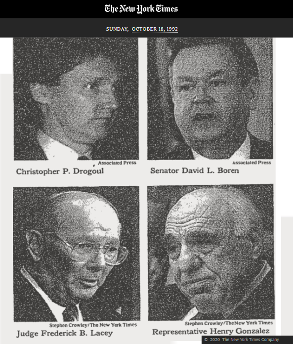 Mr. Barr appointed Judge Lacey, a retired Federal judge from New Jersey, last month under increasing pressure from Congress and from a ferocious struggle over the Government’s handling of the multibillion-dollar bank-fraud case among the Justice Department, the Central Intelligence Agency and the Federal Bureau of Investigation.