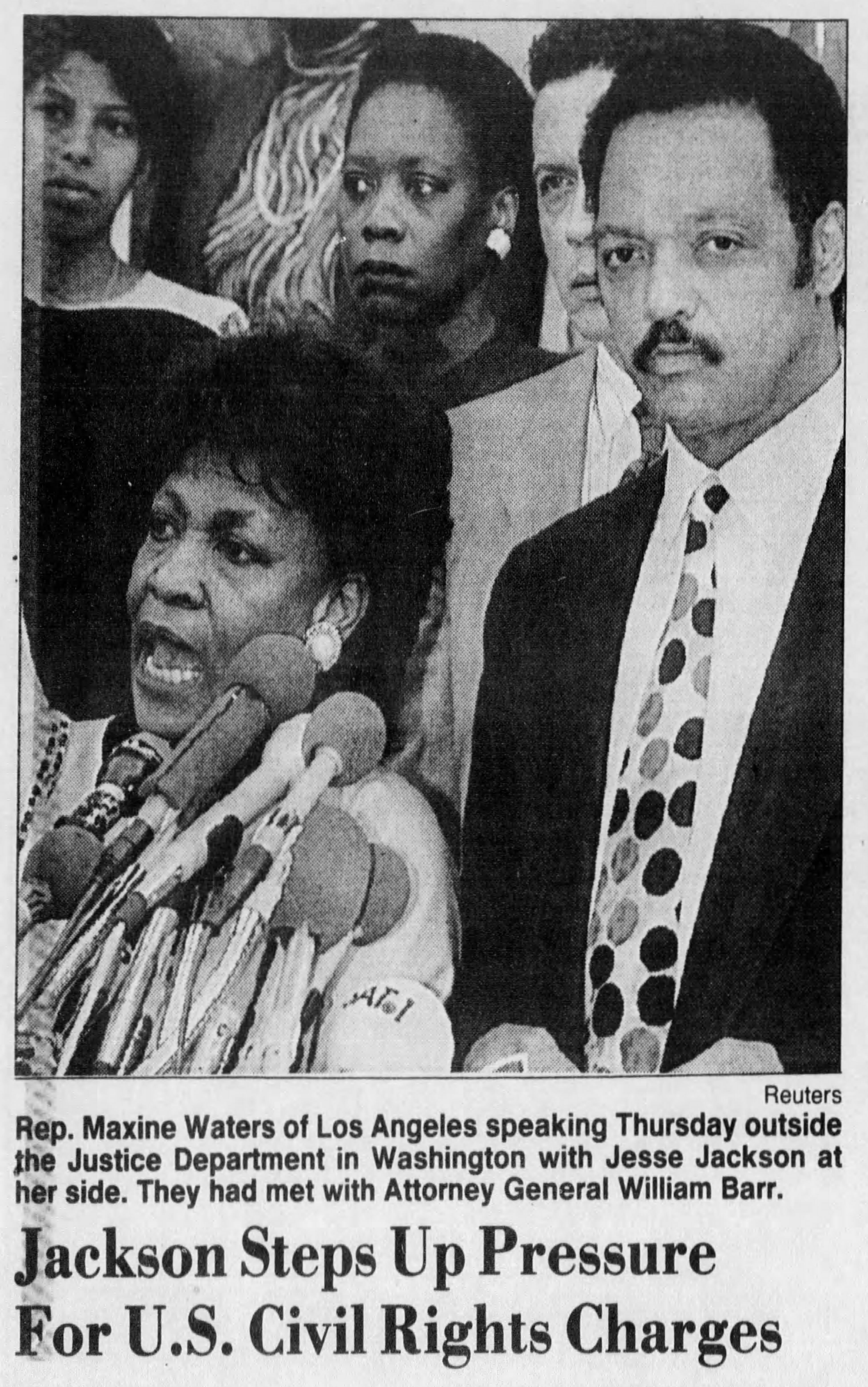 A: No. Violent crime is a high priority, the role of gangs, the problem we have in the juvenile justice system. These are things that obviously were related to the riots in Los Angeles and the whole problem we have in the inner cities. The importance of prosecuting the war on drugs, similarly, I think, is responsive to one of the real problems we have in our cities in the United States. Even in the civil-rights area, where one of my chief priorities has been in fair housing and in lending practices and mortgage practices, that’s very important to rehabilitate in the inner cities. The problem of immigration enforcement–making sure we have a fair set of rules and then enforce them–I think that’s certainly relevant to the problems we’re seeing in Los Angeles.