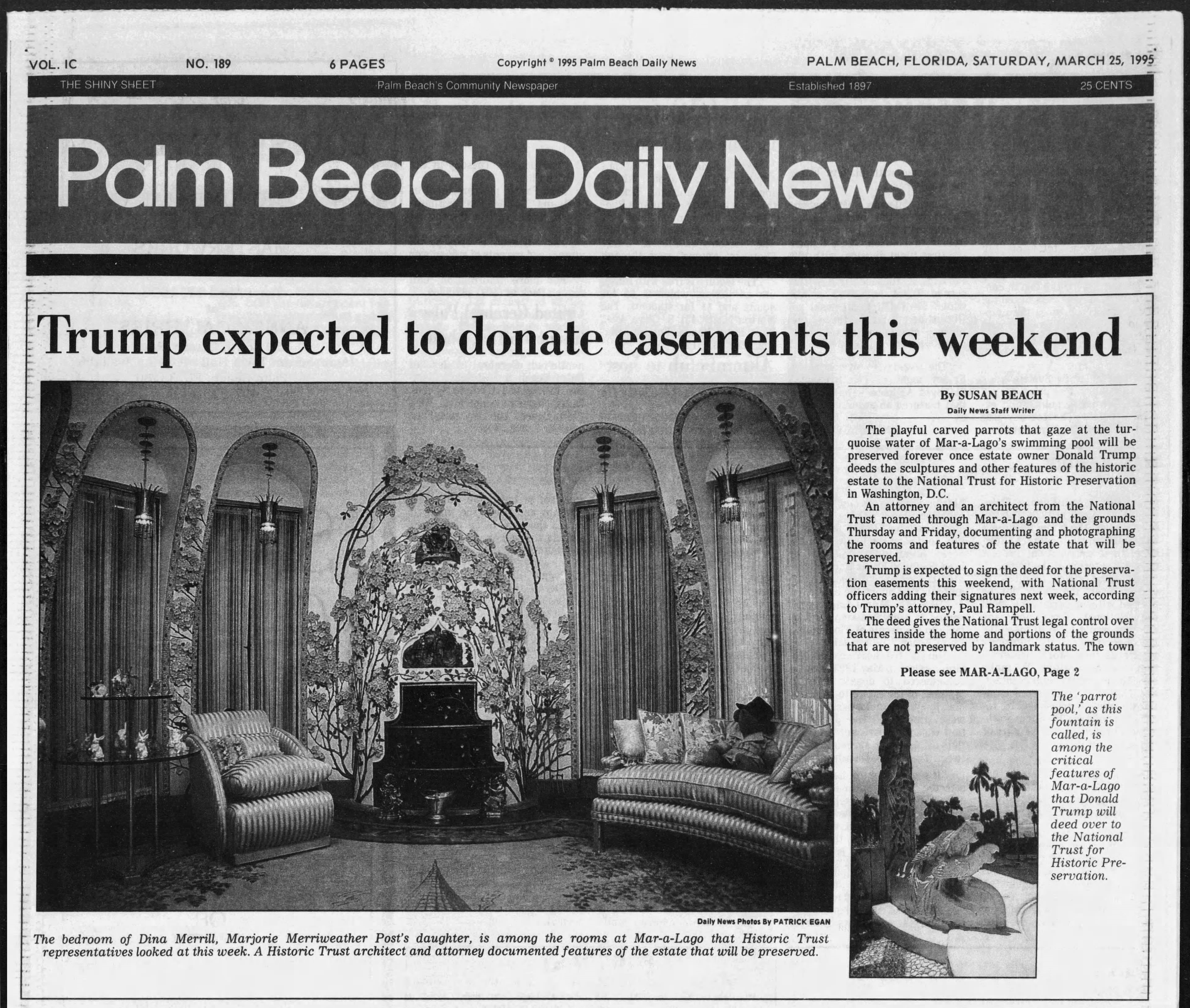 March 25, 1995 — Trump expected to donate easements this weekend, by Susan Beach