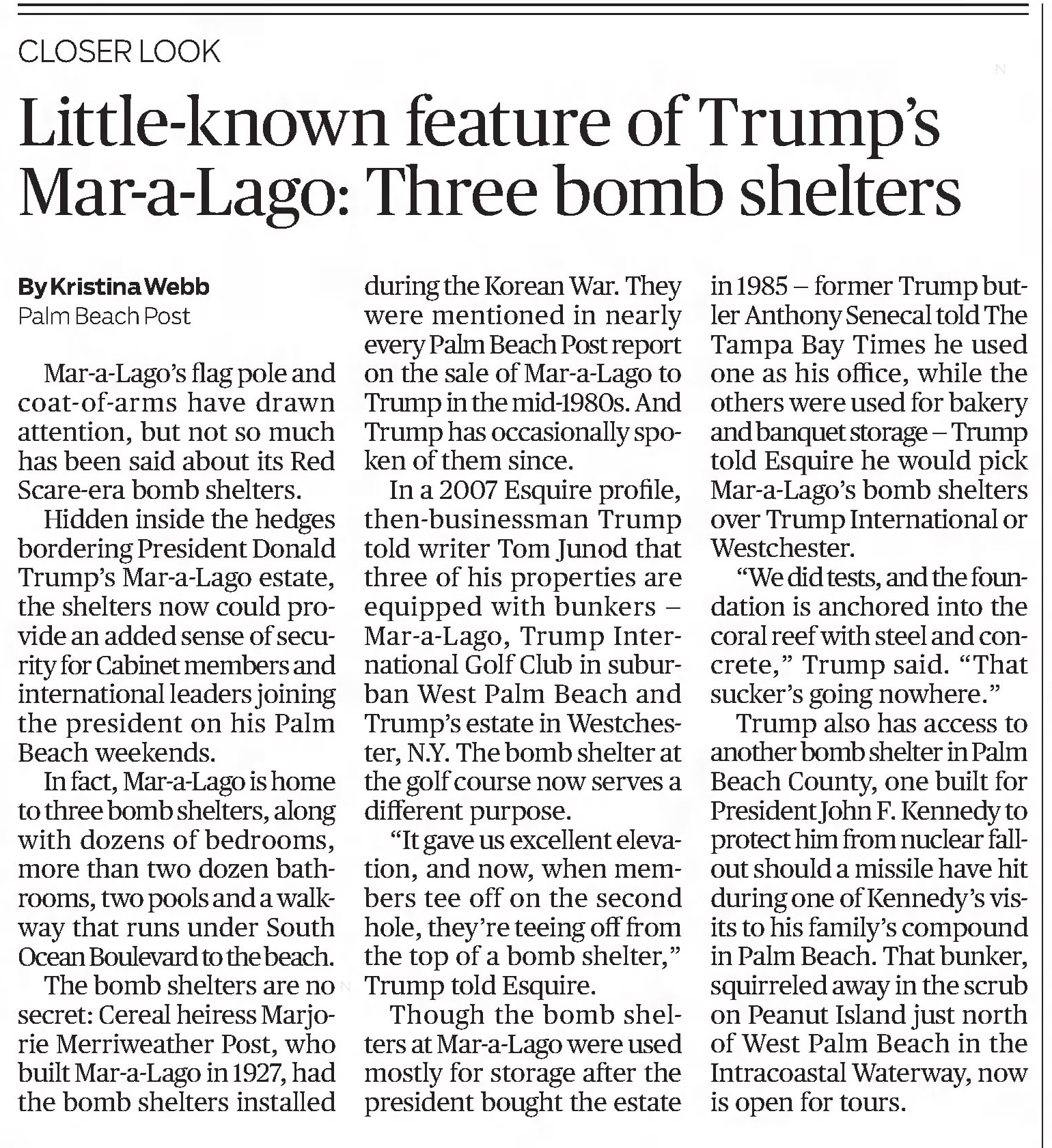 April 18, 2017 — Little-known feature of Trump’s Mar-a-Lago: Three bomb shelters, by Kristina Webb