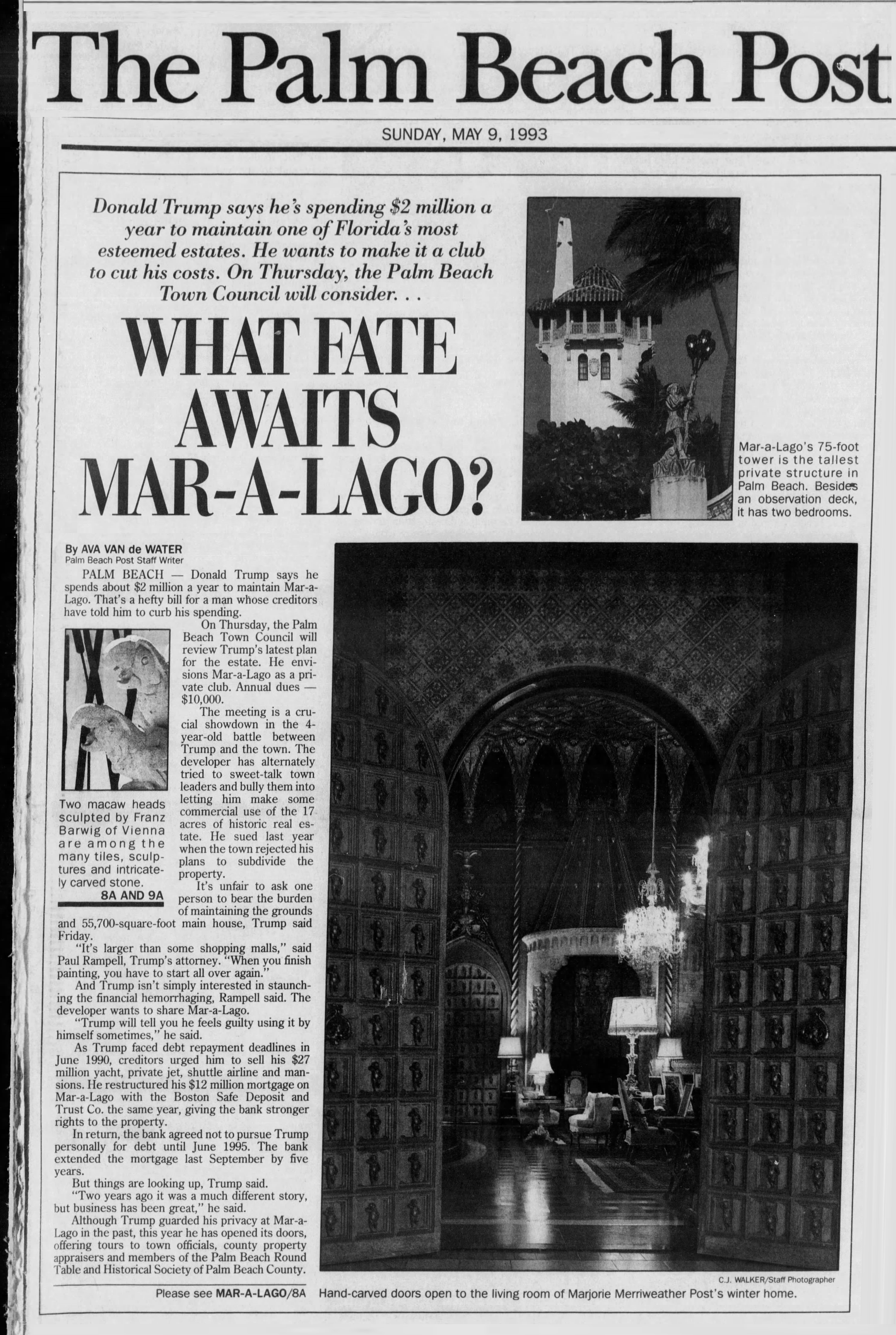 May 9, 1989 — What Fate Awaits Mar-A-Lago? by Ava Van de Water and C.J. Walker