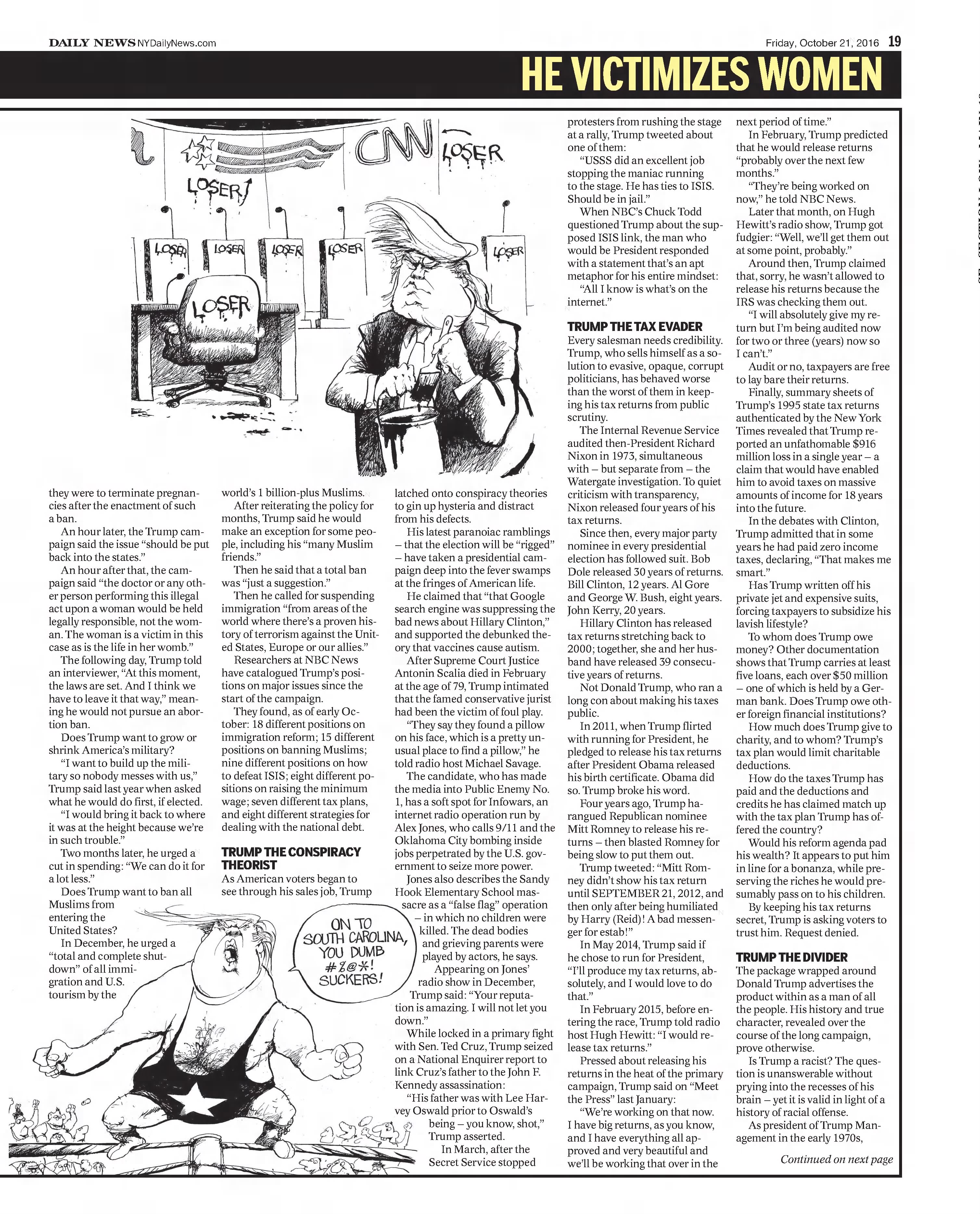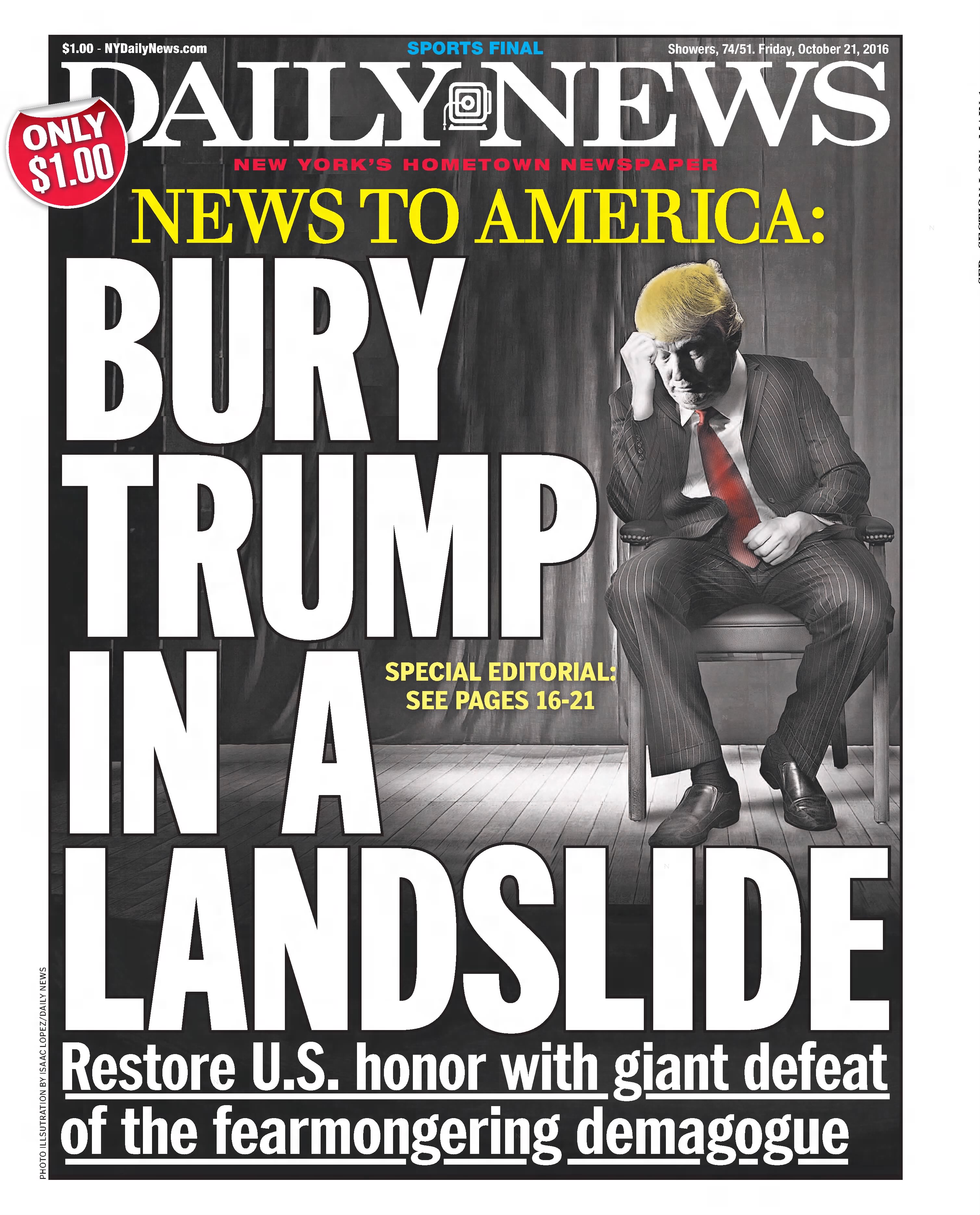 October 21, 2016 — NEWS TO AMERICA: BURY TRUMP IN A LANDSLIDE, A Special Editorial by the New York Daily News