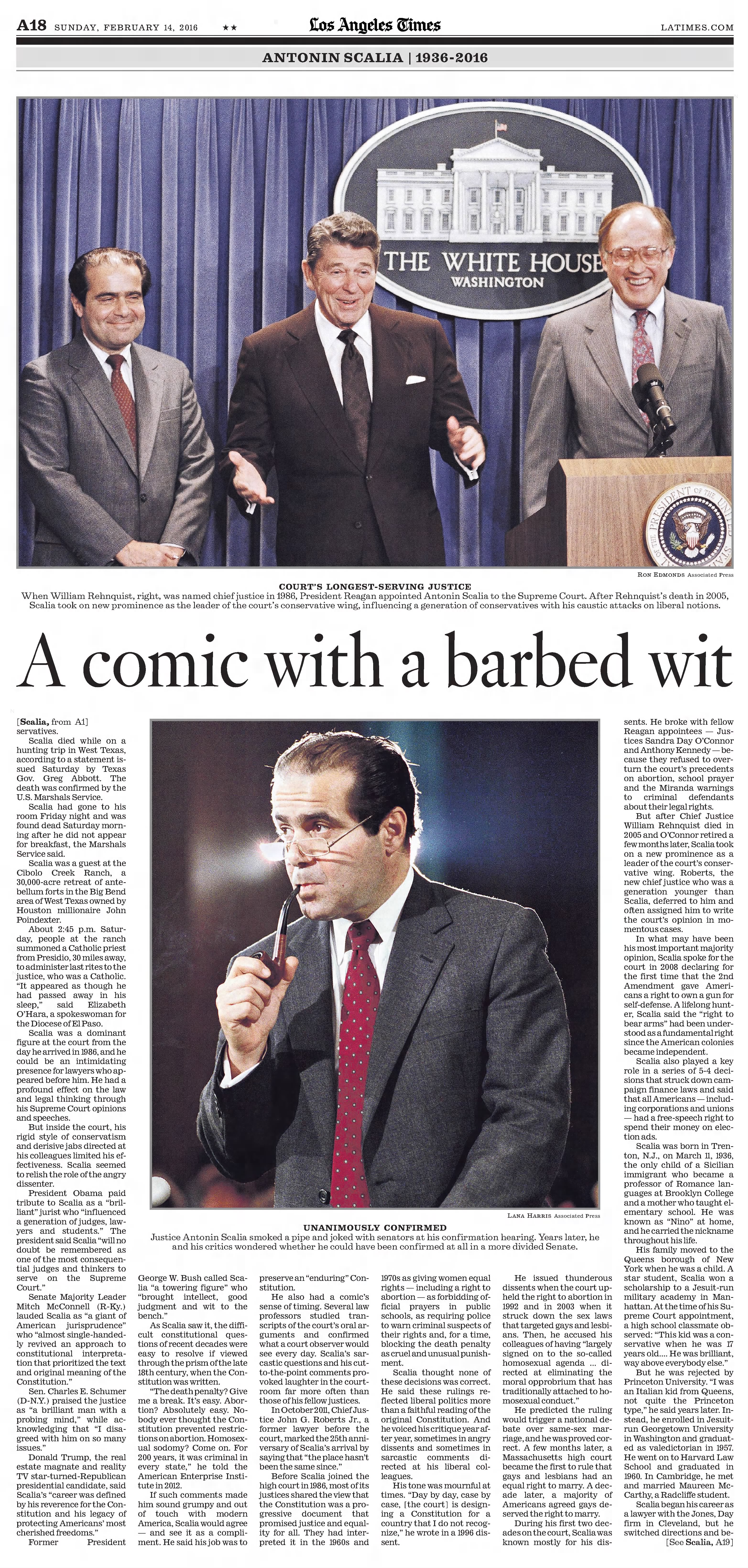 “It is deeply disturbing to hear a Supreme Court justice endorse racist ideas from the bench of the nation’s highest court,” Reid said on the Senate floor. “The only difference between the ideas endorsed by [Donald] Trump and Scalia is that Scalia has a robe and a lifetime appointment.”