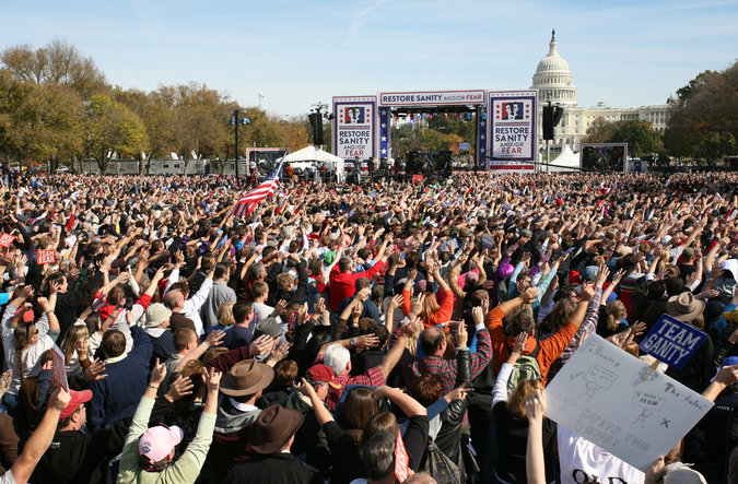 “The Rally to Restore Sanity and/or Fear in 2010, which Stewart co-hosted with Stephen Colbert.”