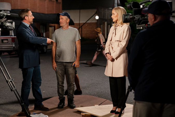“Stewart on the ‘Irresistible’ set [2020] with Steve Carell and Rose Byrne.”