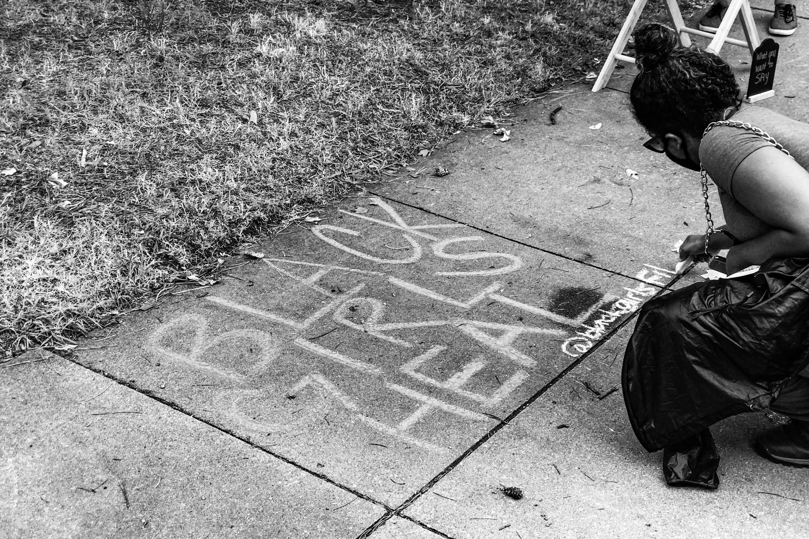 Visitors drew power from both the legacy of the local community and the energy of the current national moment. At a freeform art station, where passersby were encouraged to pick up a piece of chalk and write what they felt, Cherrelle Swain inscribed the phrase “black girls heal” in a declarative font similar to the letters that had transformed Greenwood Avenue overnight. “When I started walking down this street in particular, it gave me goosebumps,” Swain, a documentary filmmaker from Washington, D.C., said. “On the plaque out there, it says $2.7 million that was never recuperated, no reparations. You just think about the generational gaps in wealth between black families and white families. To me, it gives me momentum to make sure that we continue that fight for liberation.”