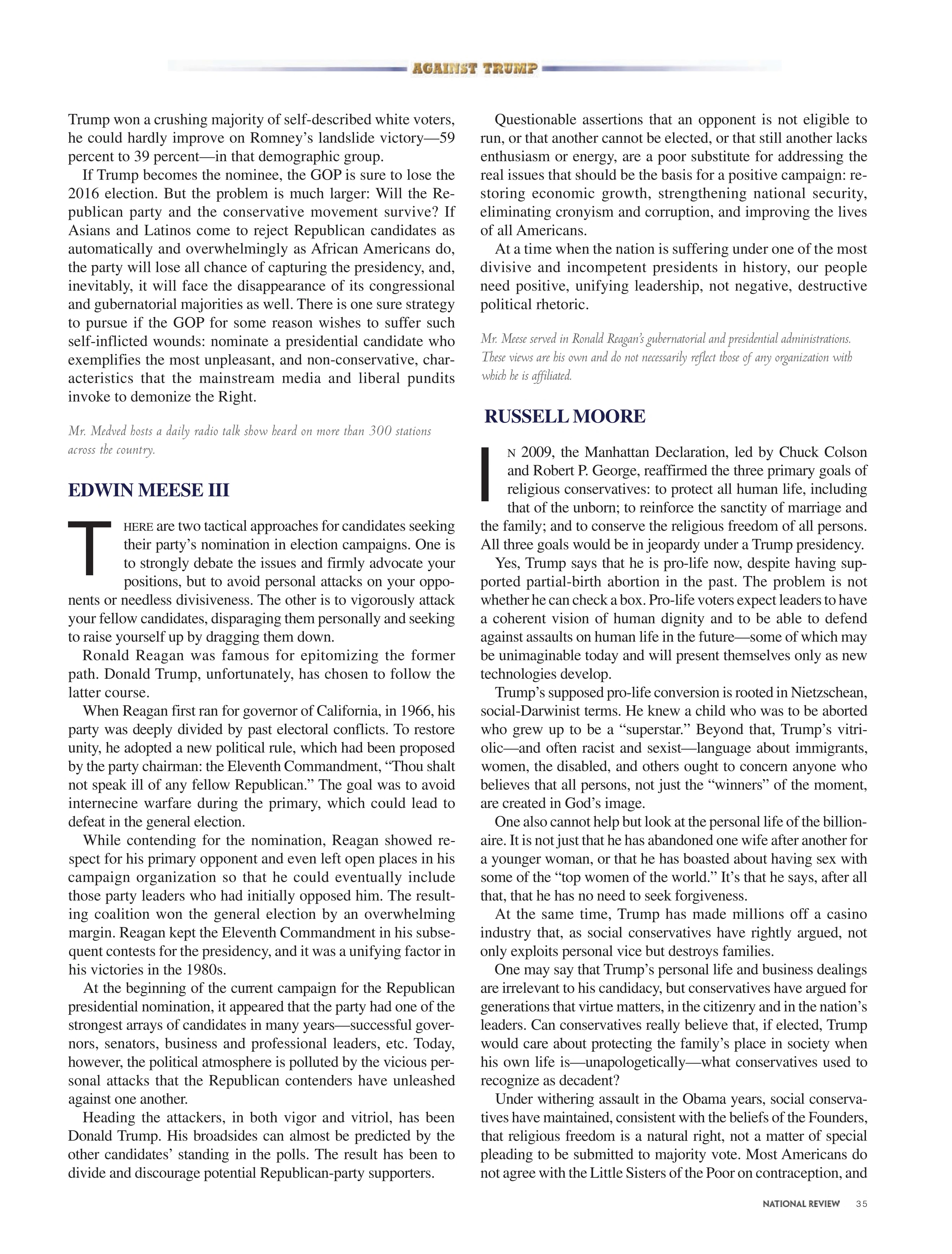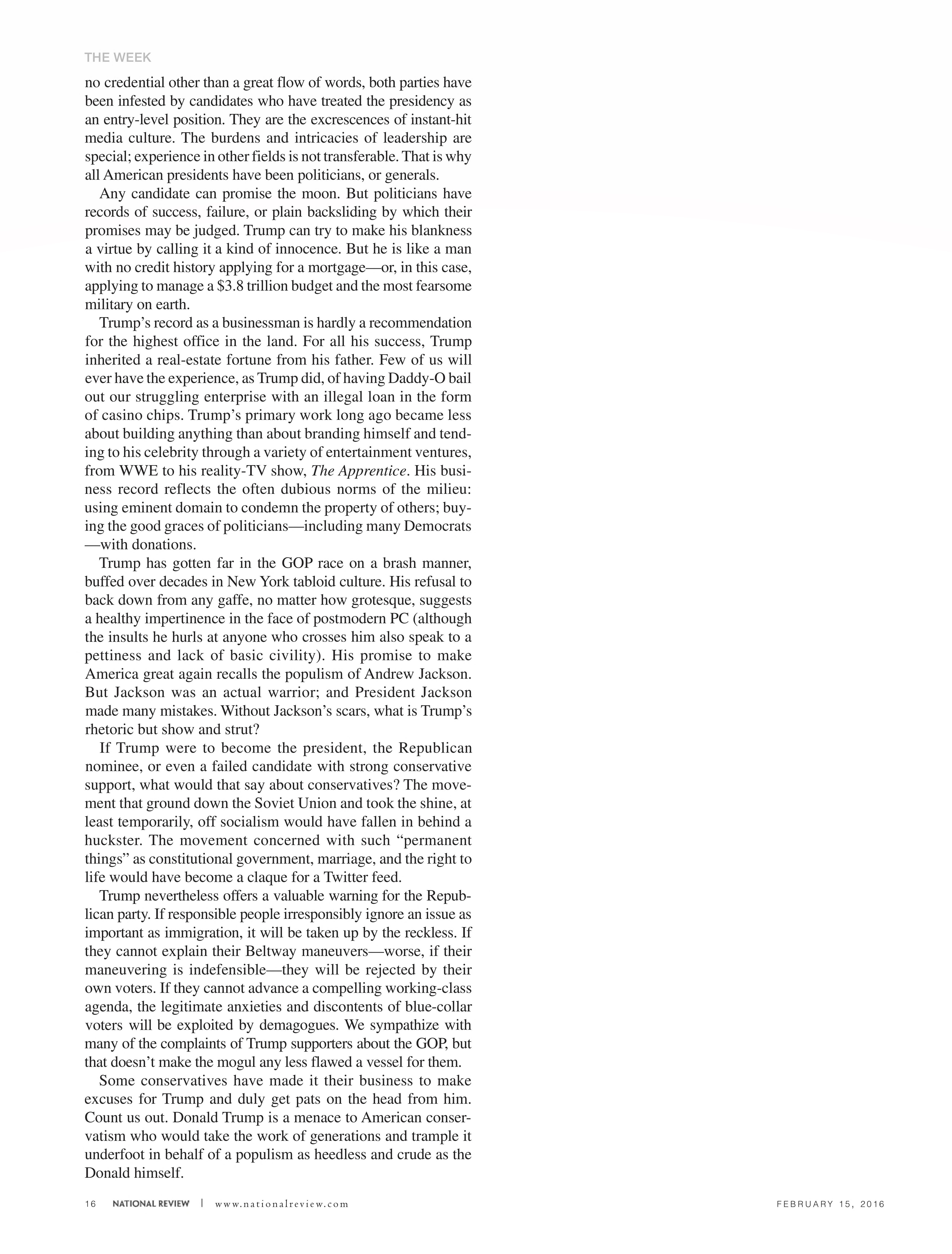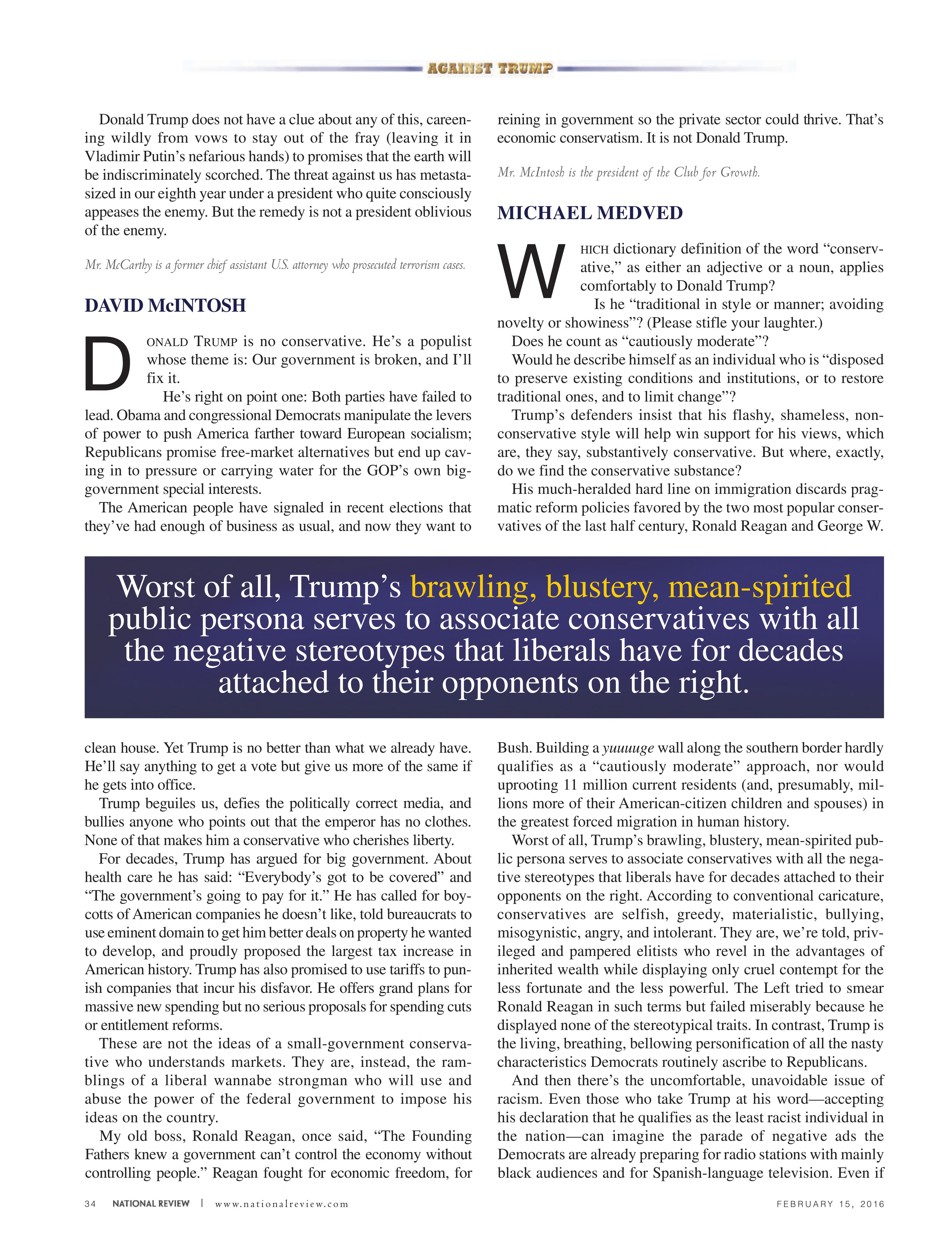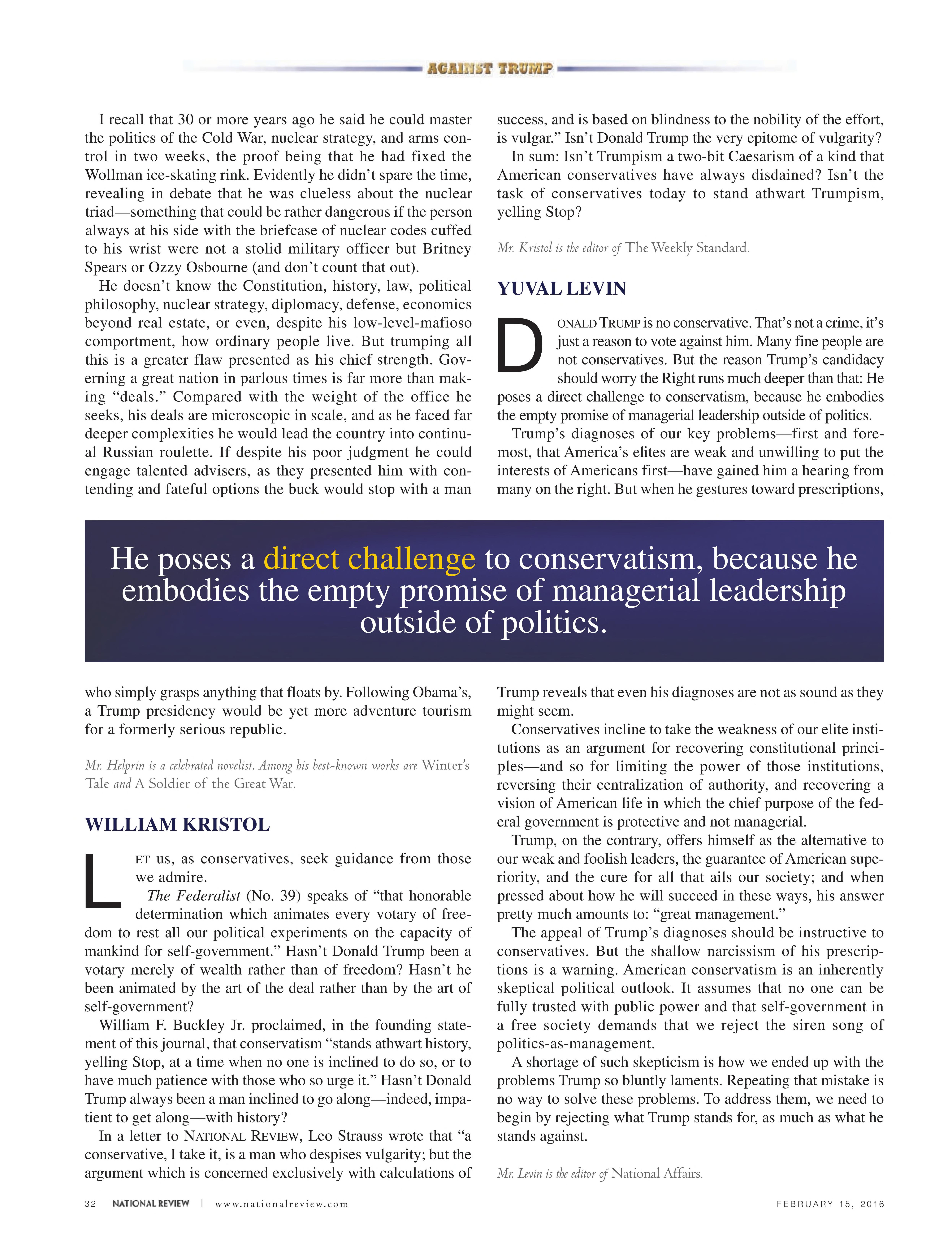 February 15, 2016 — National Review: CONSERVATIVES AGAINST TRUMP, by The Editors