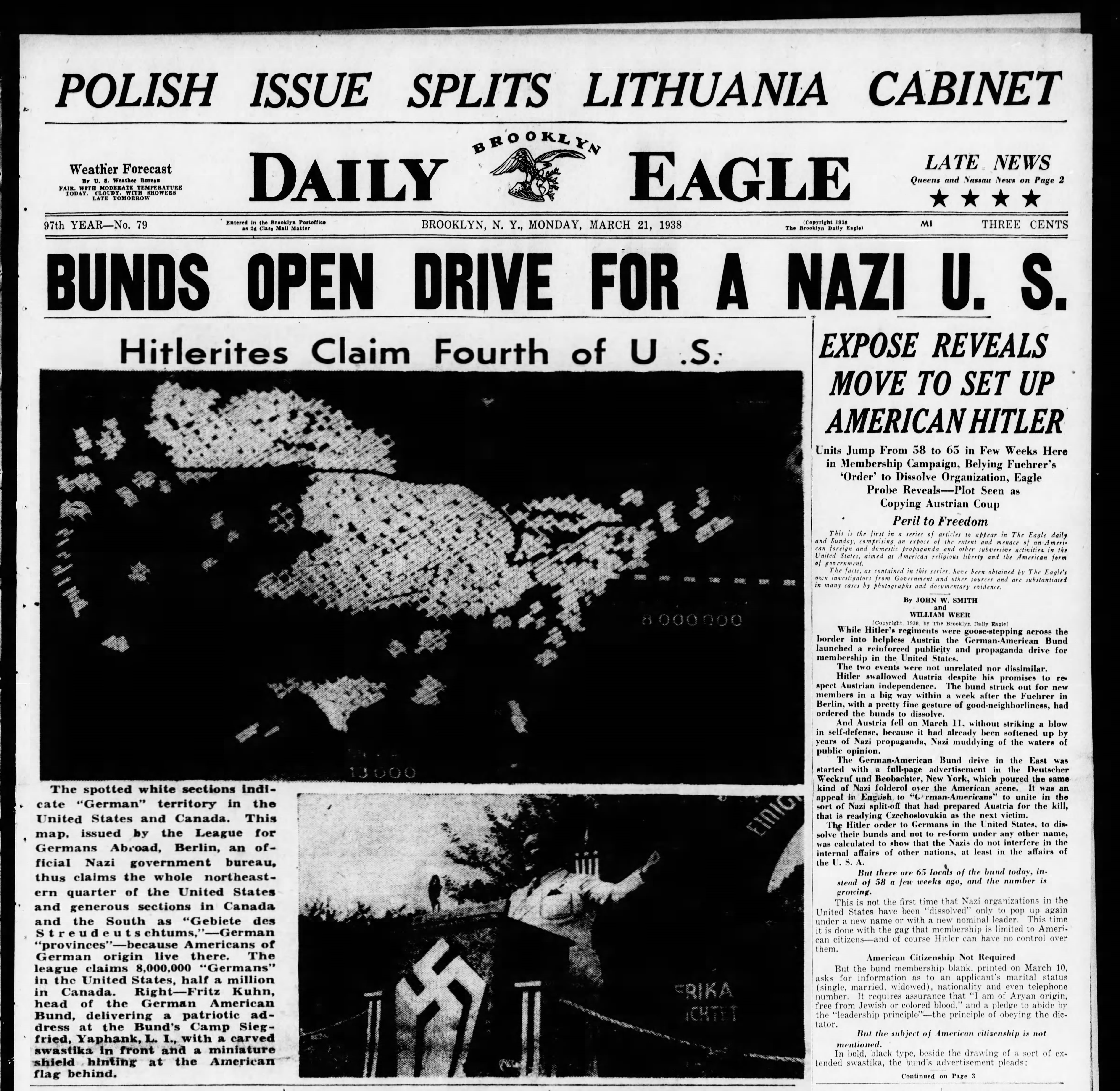 The pro-Hitler movement began as the ‘German-American Bund.’ That was the wolf in wolf’s clothing. It could get nowhere. It failed.