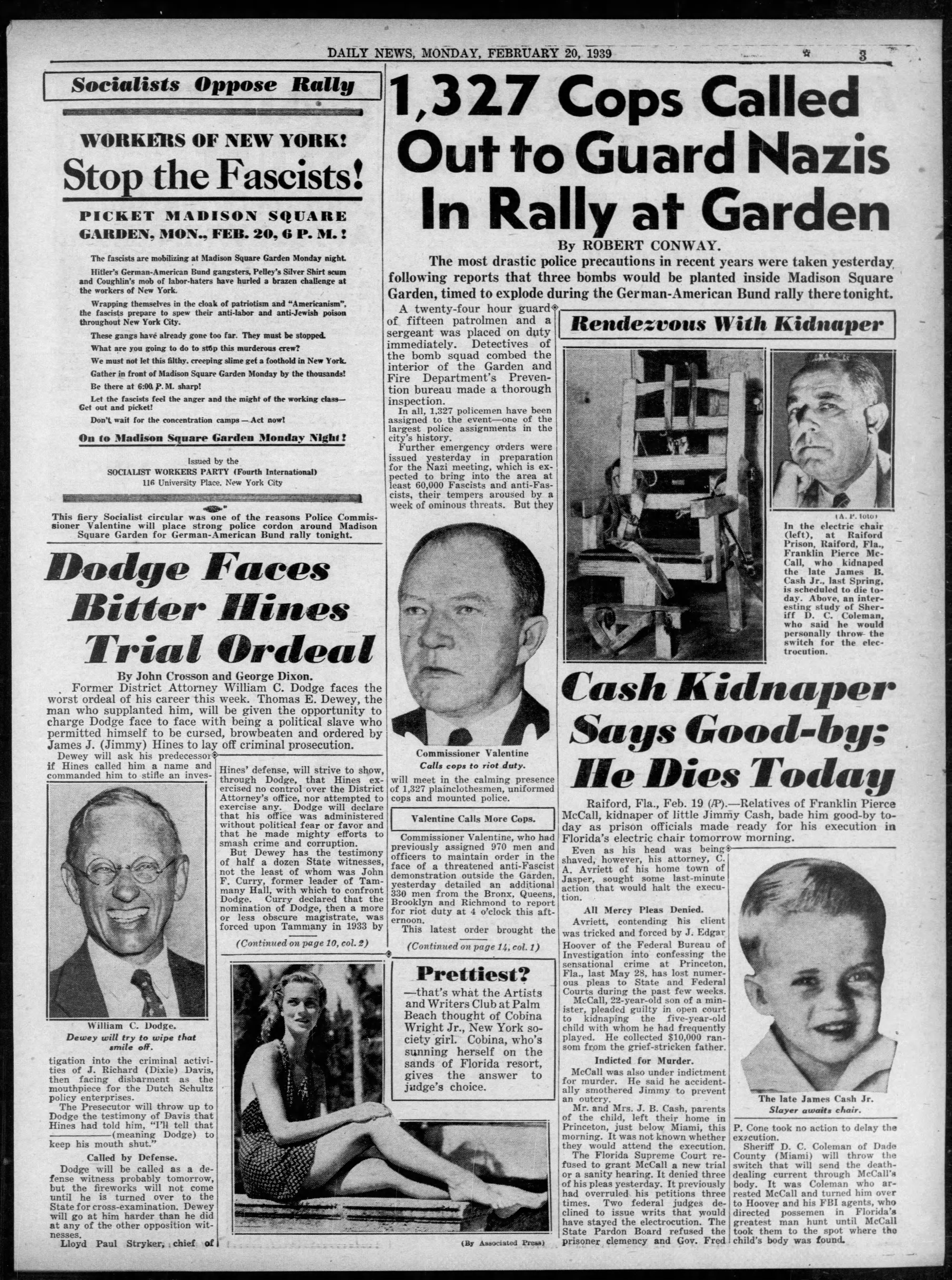 The height of the Bund’s activities was a February 20, 1939 rally at New York City’s Madison Square Garden. It drew some 20,000 Bund members and Nazi supporters. One German American who did not hide his far-right views was Fred Trump, Sr., the father of Donald Trump. On May 31, 1927, Fred Trump was arrested by police while participating in a Ku Klux Klan march in his home borough of Queens in New York. The elder Trump was publicly known to be a racist and he refused to rent his apartments in Queens and Brooklyn to African Americans. In 1927, there were few organizations for far-right extremists like Fred Trump to join. One was the KKK, which had its roots in the post-Civil War Reconstruction South. Another was Italian leader Benito Mussolini’s overseas ‘Fascisti,’ which was primarily composed of Italian immigrants to the United States. By the early 1930s, far-right wingers in the American North were fast to embrace the Nazis and Kuhn’s Bund was able and ready to answer the call and begin recruiting to its ranks. Fred Trump’s FBI file – which includes the 1927 arrest at the KKK march – appears to be missing his pre-war and immediate post-war year activities. The file does not resume until the 1960s, when the FBI began monitoring the elder Trump’s association with Mafia syndicates in New York.