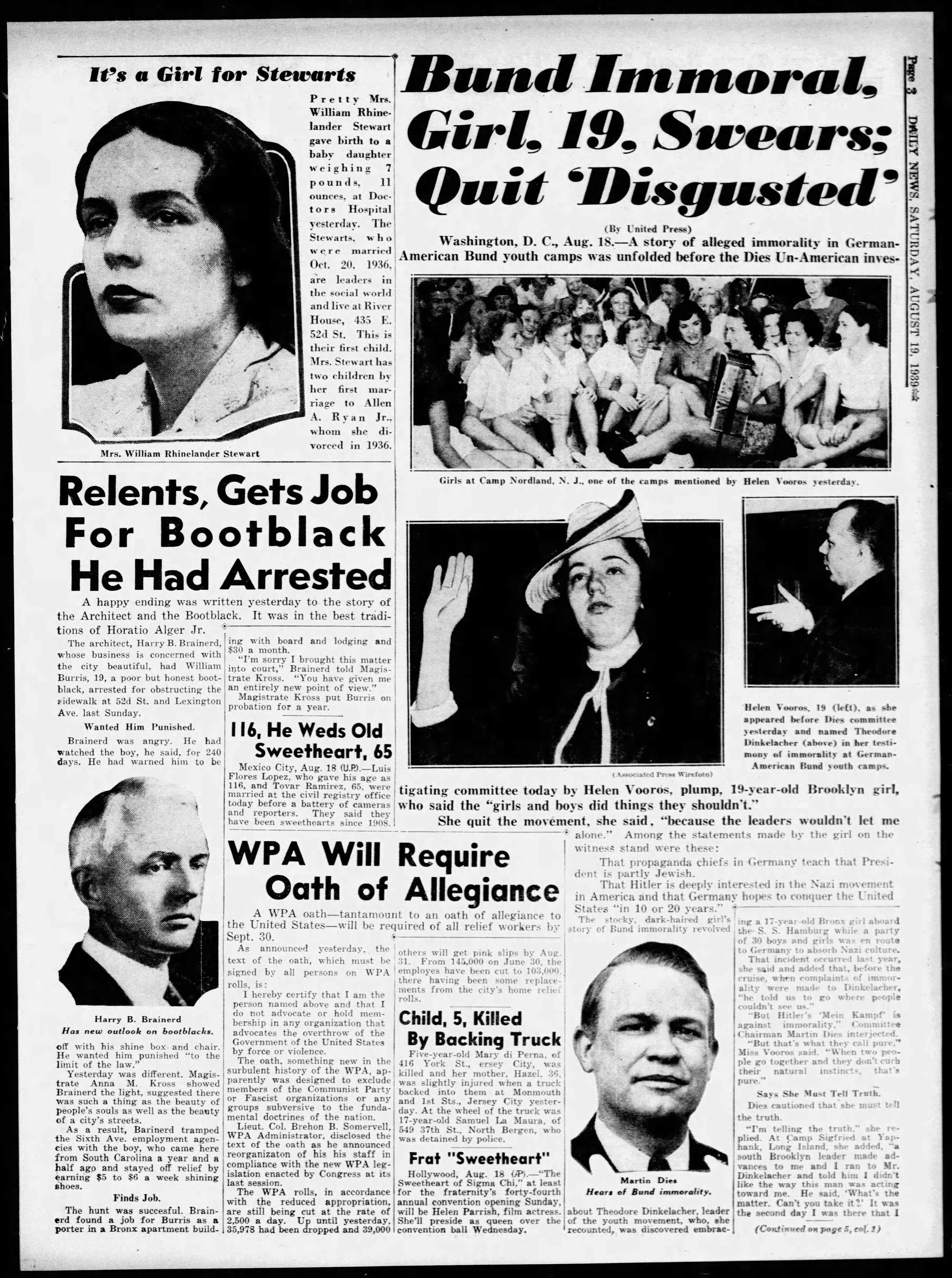 Old Man Trump’s home and businesses sat in the midst of Bund activities and businesses that supported the Bund. One of the most popular newspapers among the German American community in New York and New Jersey was the Bund’s ‘The Free American and Deutscher Weckruf,’ published from 1935 to 1941 in both English and German.