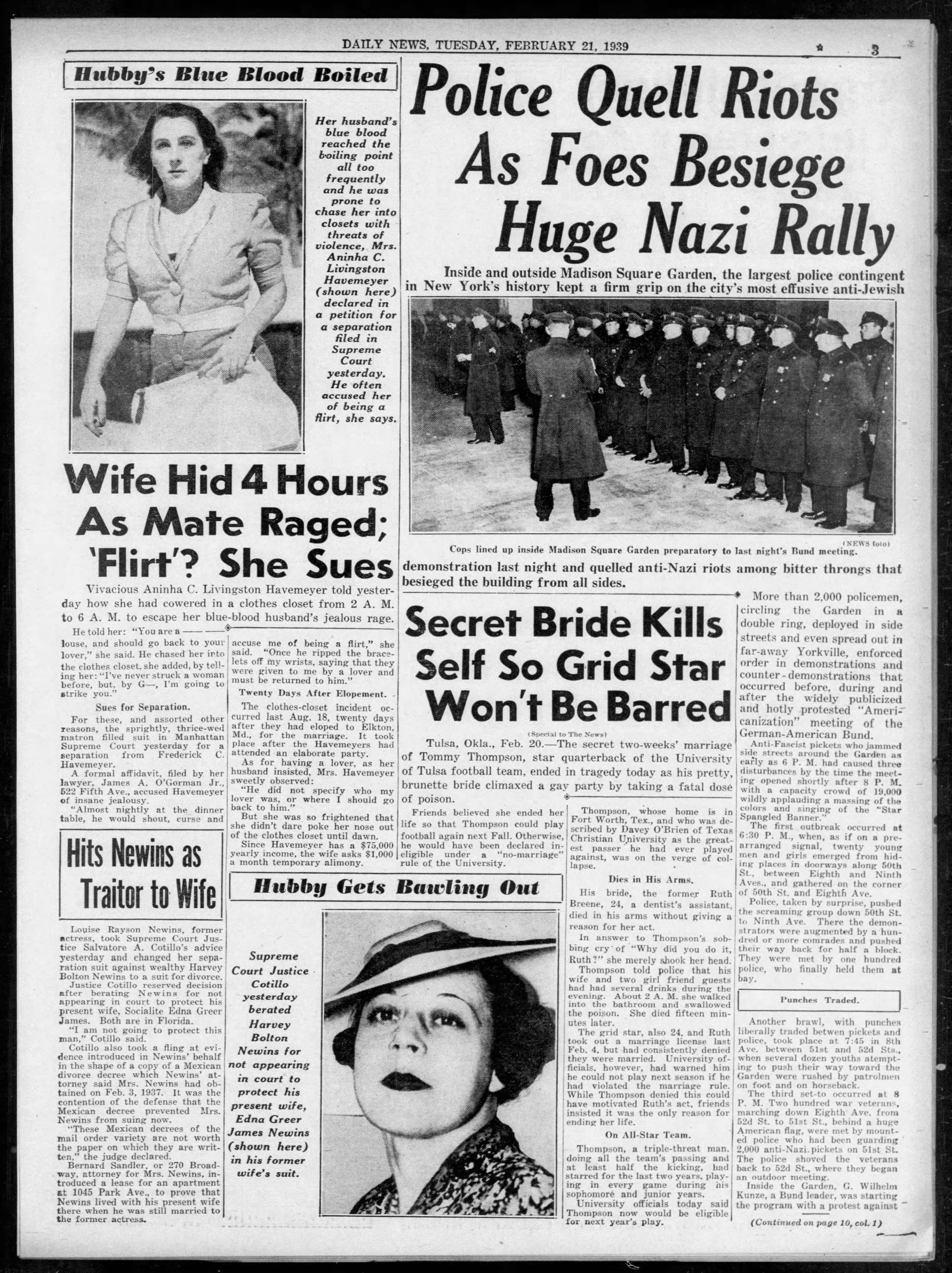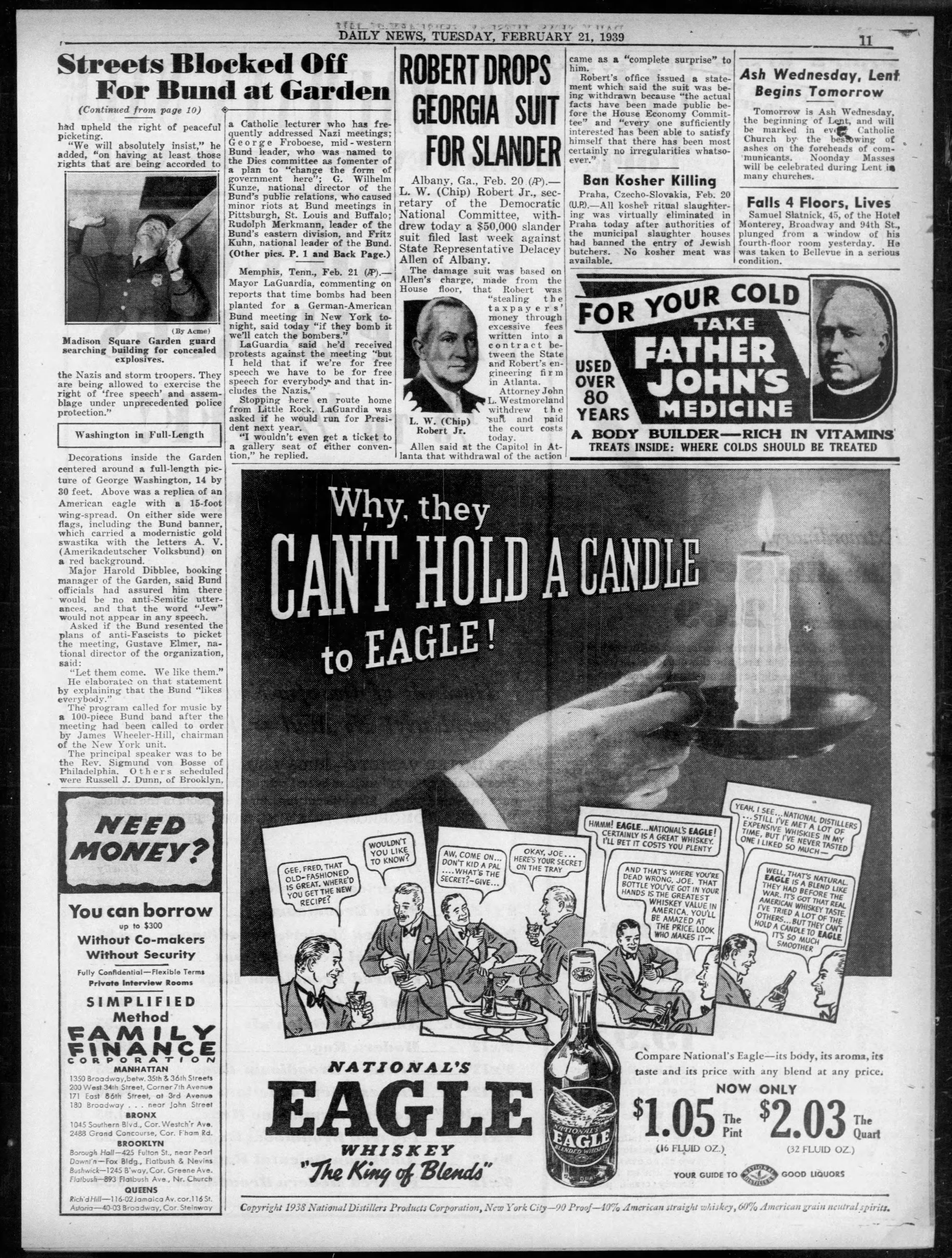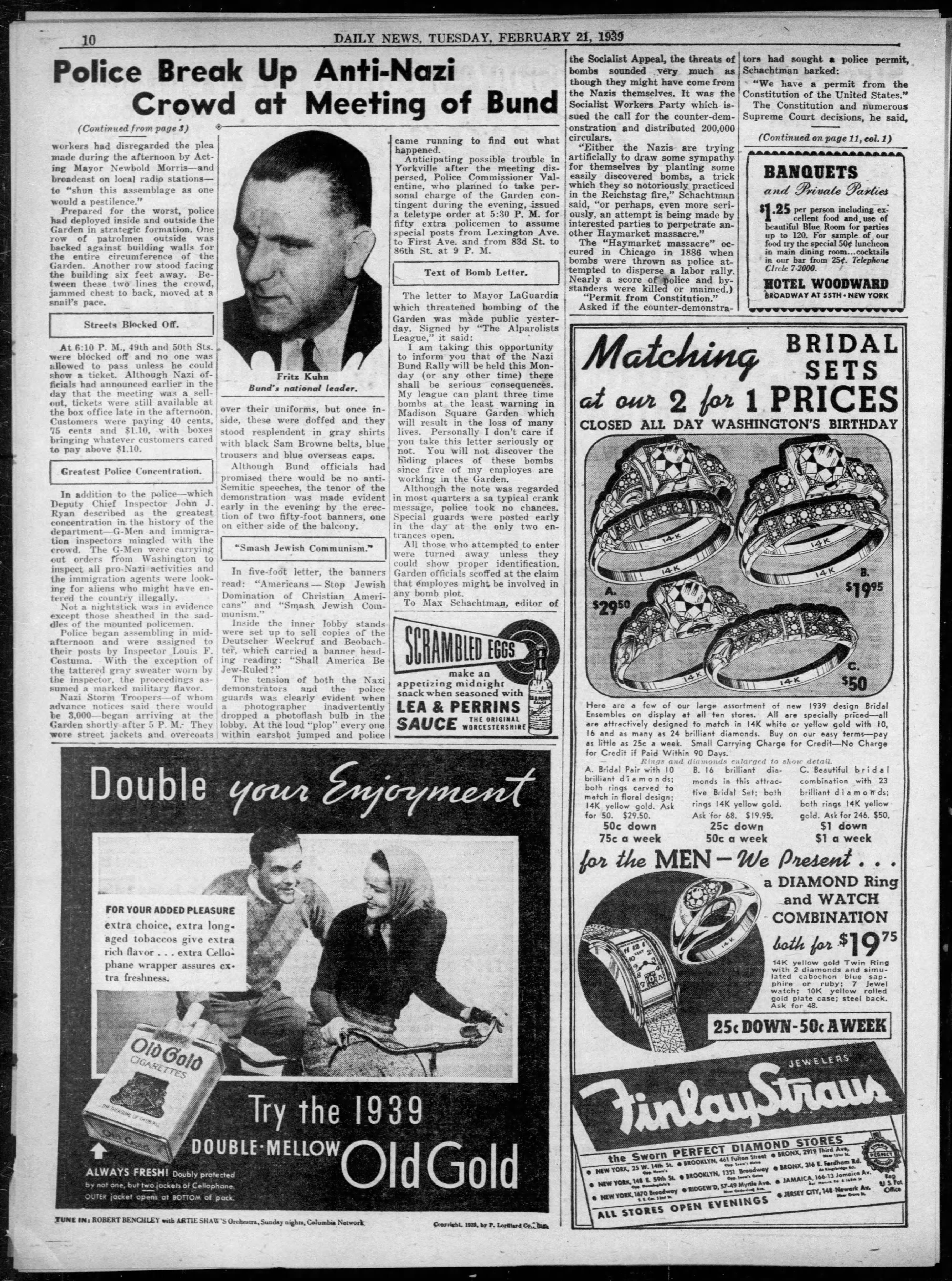 The newspaper served to rally the Nazi cause in New York and New Jersey. The paper advertised New York theaters like the Tobis, 86th Casino, 79th Street, and Bijou that screened propaganda films fresh from the studios of Nazi filmmaker Leni Riefenstahl. Nazi Germany’s cultural inundation of the United States was a personal project of Propaganda Minister Joseph Goebbels.