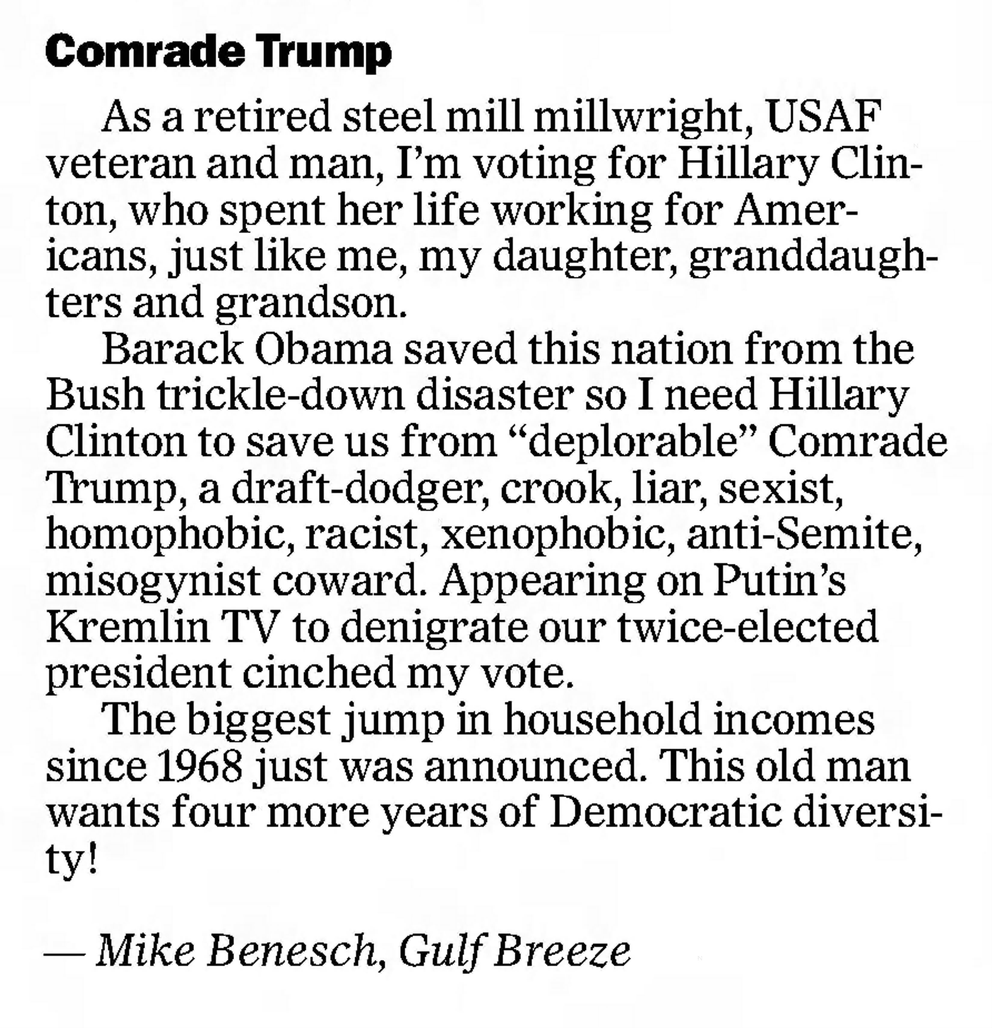 Over the course of his campaign, Trump has been a contrarian on Russia, floating the idea of reducing the American commitment to NATO and calling Russian President Vladimir Putin a ‘strong leader.’ ‘I think I would have a very good relationship with Putin,’ he said last year. So it makes sense that Trump tapped Page for his foreign-policy team. In writings posted online, Page is a reliable defender of Russian intentions, and portrays U.S. policymakers as stuck in an outdated Cold War mindset.”