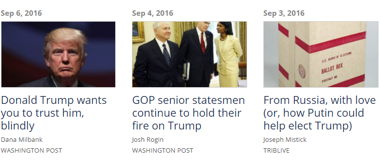 Sources: Slate, Wall Street Journal (paywall), The New Yorker, Talking Points Memo, Mother Jones, The New York Times, Business Insider