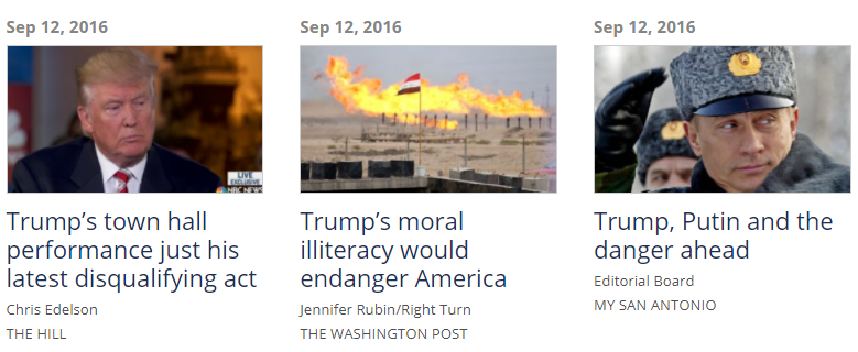 “The only thing longer than the list of hostile Russian actions abroad is the list of repressive actions inside Russia to stifle dissent and strengthen Mr. Putin’s security services-run state. Mr. Putin will continue to behave aggressively until confronted and stopped. … neither Mrs. Clinton nor Mr. Trump has expressed any views on how they would deal with Mr. Putin (although Mr. Trump’s expressions of admiration for the man and his authoritarian regime are naive and irresponsible). …
