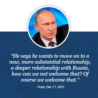 “…I own Miss Universe, I was in Russia, I was in Moscow recently and I spoke, indirectly and directly, with President Putin, who could not have been nicer, and we had a tremendous success.” (National Press Club address, 2014)