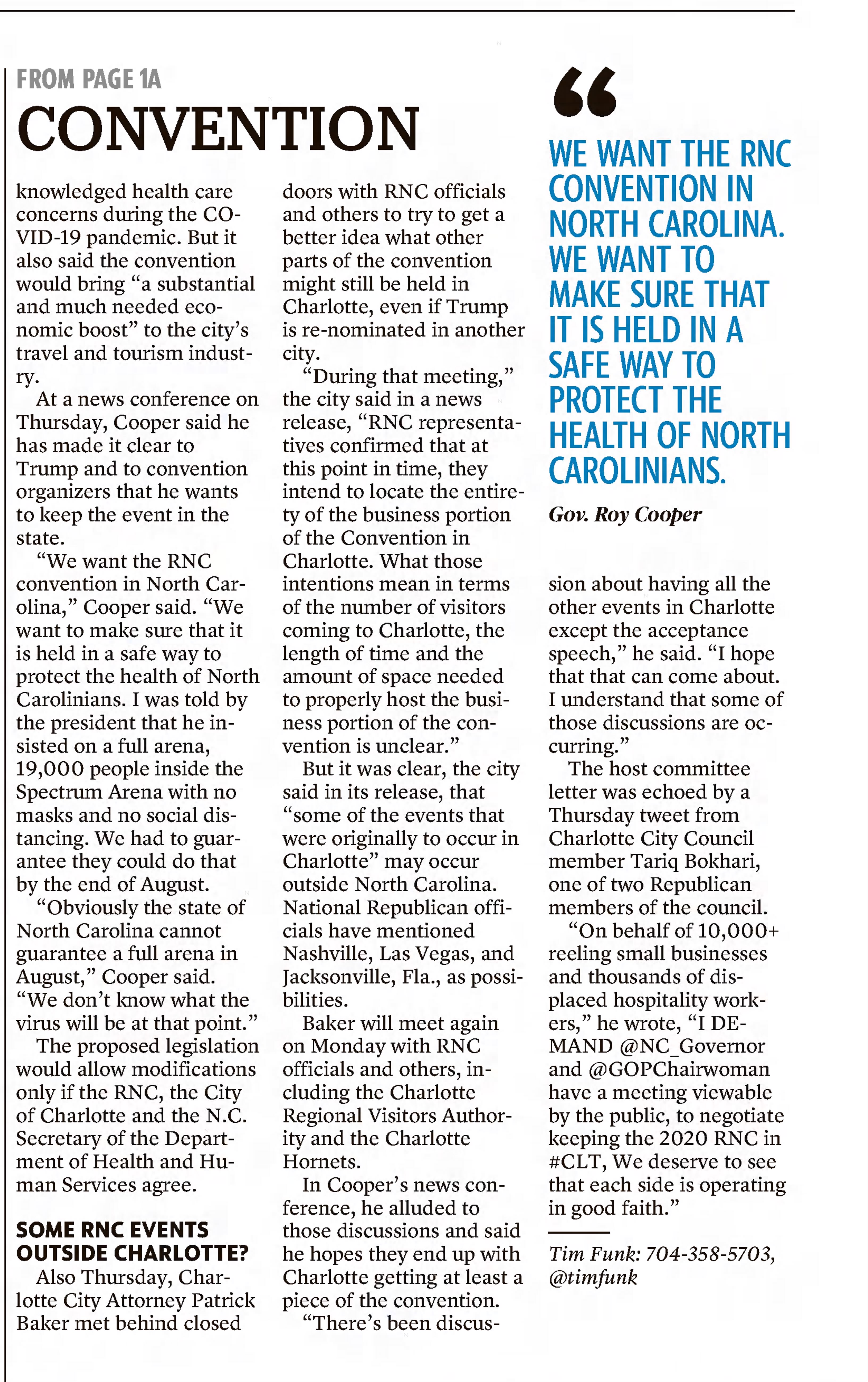State health officials in North Carolina agreed to both “flexibly enforce” COVID-19 rules and gave RNC planners an exception on crowd size limits so that business meetings could be held. Still, local officials were assured masks would be worn.