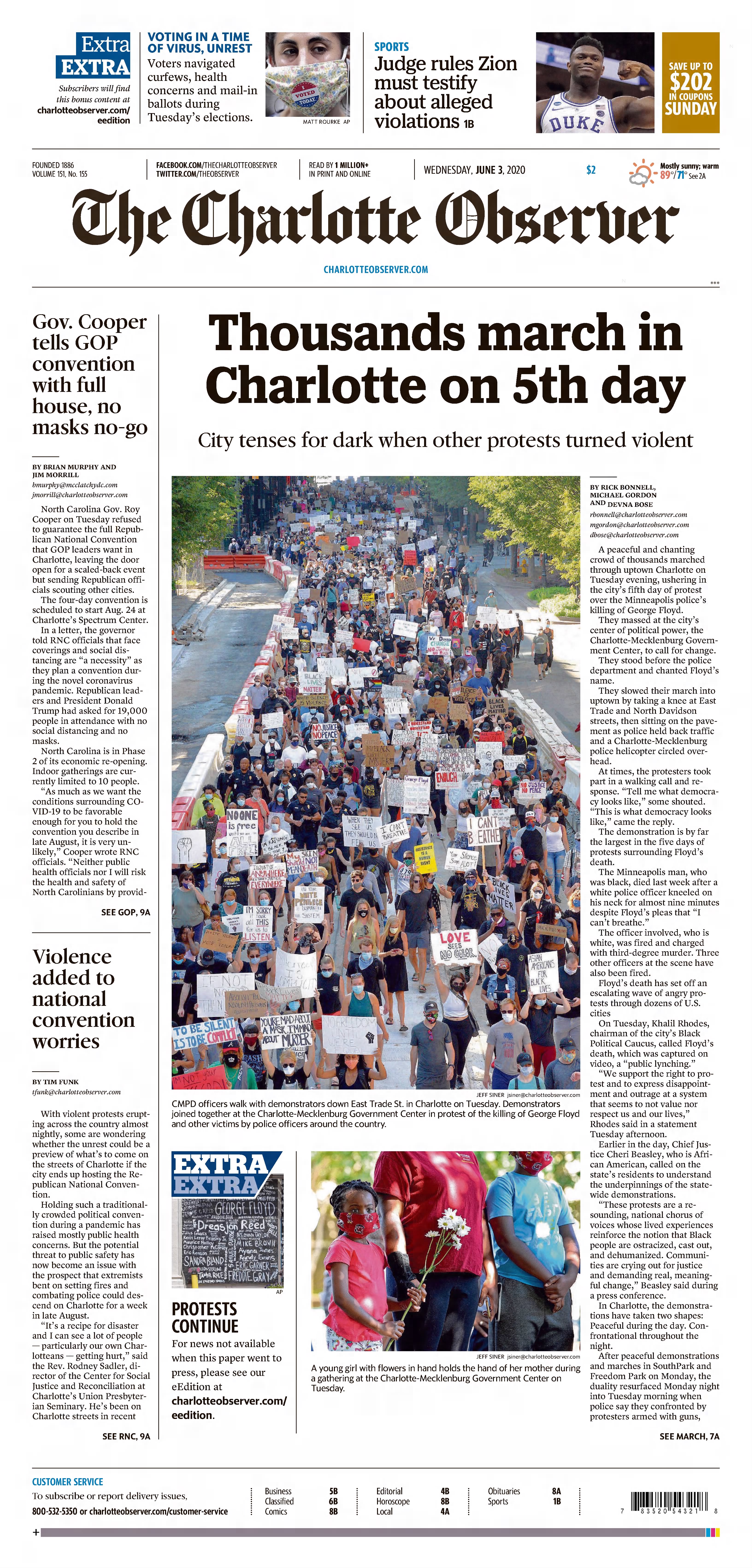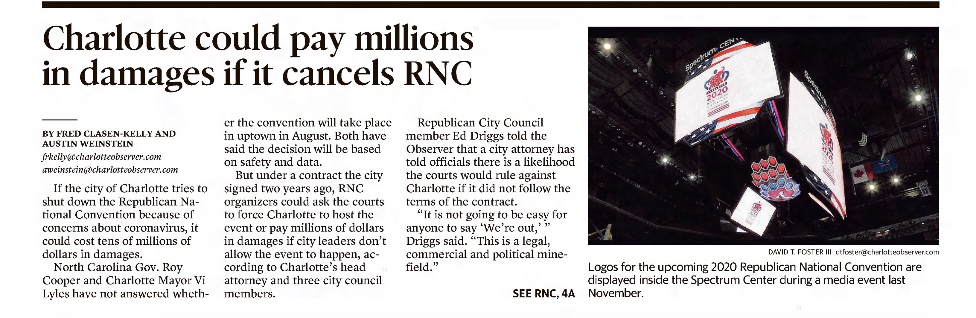 The scenes inside the Convention Center sharply contrasted with recent assurances from RNC and local officials, who have touted sweeping health guidelines to mitigate COVID-19 exposure risk for delegates and Charlotte area residents.